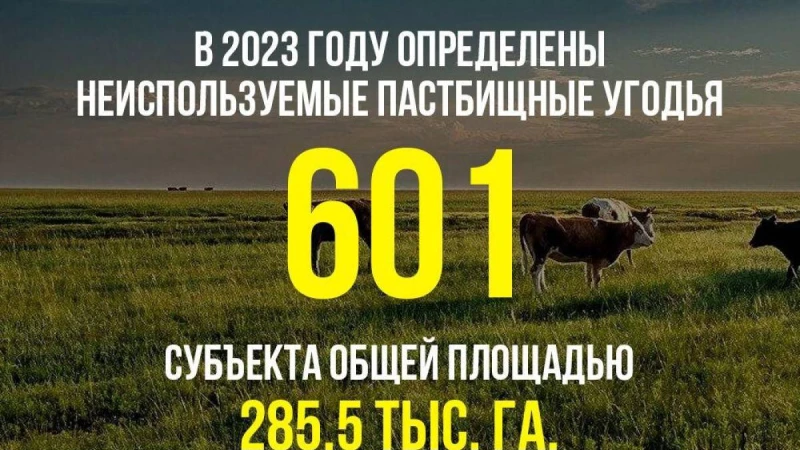 В 2023 году местными исполнительными органами города Конаев и районов определены неиспользуемые пастбищные угодья 601 субъекта общей площадью 285,5 тыс. га.