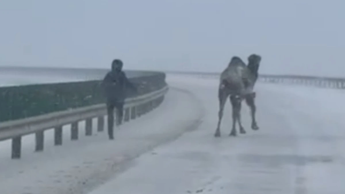 На автодороге Актау – Жанаозен произошёл необычный инцидент: верблюд вышел на проезжую часть и фактически заблокировал движение колонны машин, следовавших под сопровождением полиции. В тот момент сотрудники правоохранительных органов в условиях непогоды обеспечивали безопасный проезд более чем 500 автомобилей.